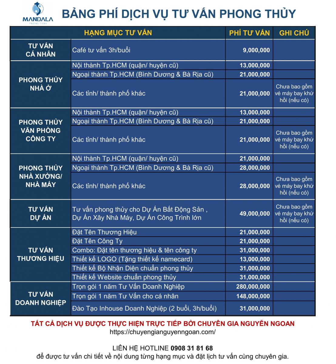 C - BẢNG PHÍ CÁC GÓI TƯ VẤN: Vui lòng liên hệ Hotline 0908 31 81 68